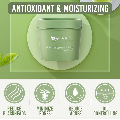- The Green Tea Cooling Cleansing Mud Mask is loaded with deeply nourishing, hydrating and healing ingredients. Our Green Tea Mud Mask not only helps in reducing skin blemishes, redness, acne and blackheads, but also has strong anti-aging and anti-wrinkle properties which can effectively fight the effects of aging. The results will be visible just from the first application while it only takes 15 minutes to finish one treatment